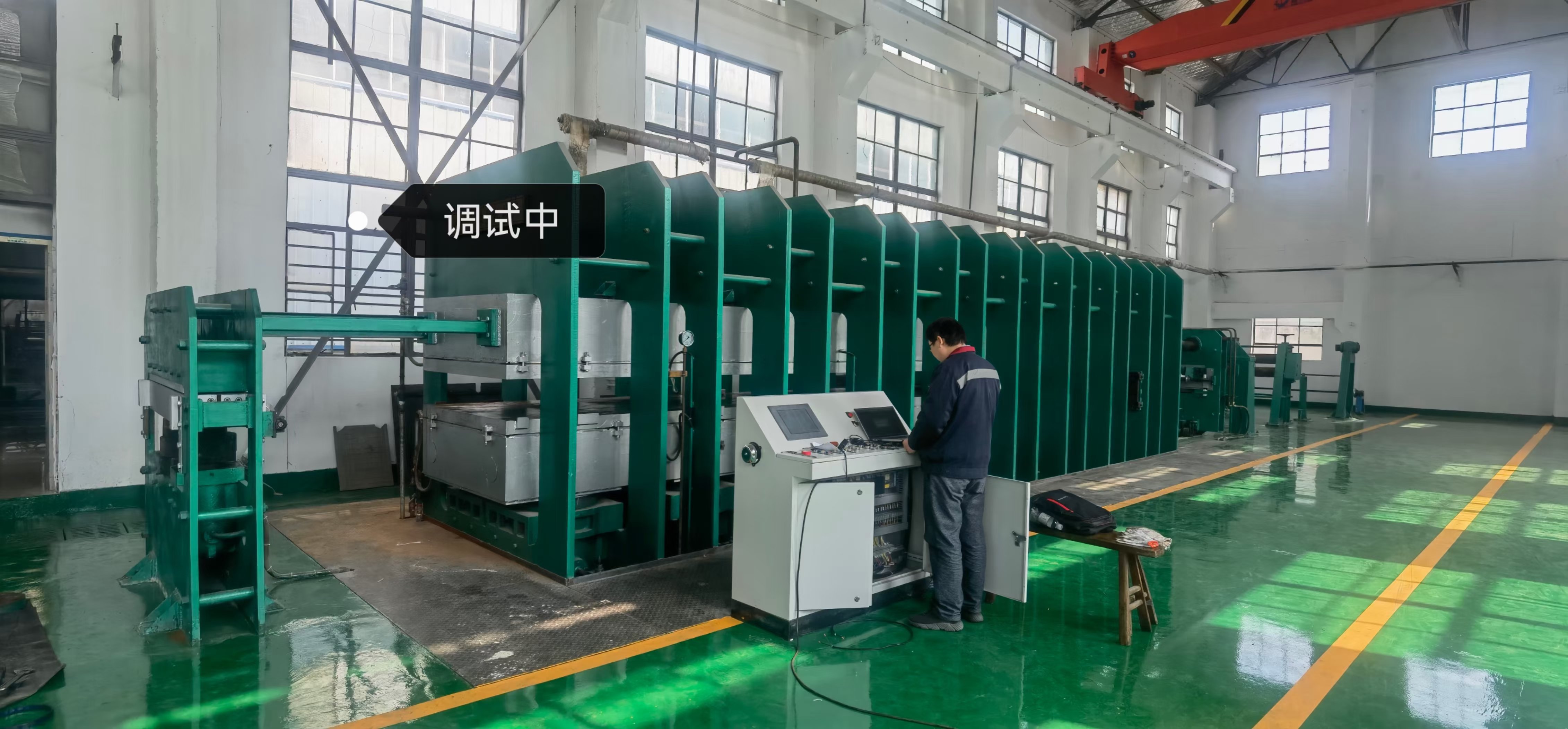 回程利用2天調(diào)試儀征1400*10000硫化機(jī)。正月未出共計(jì)試機(jī)平板三條,成型機(jī)一條,二次硫化二臺。充分體現(xiàn)出公司在近些年從設(shè)計(jì),生產(chǎn),組裝,安裝到液壓系統(tǒng),電器系統(tǒng),整體協(xié)同,質(zhì)量品質(zhì),智能智造的全線高段位體現(xiàn)。